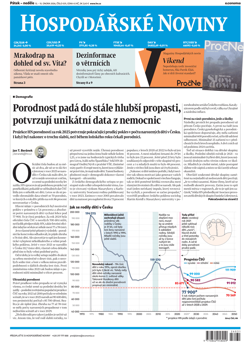 Tohle nečekaly ani pesimistické prognózy. Porodnost padá do stále hlubší propasti, potvrzuje unikátně velký balík dat z nemocnic 13. 2. 2026 ▪ 7 min. čtení
