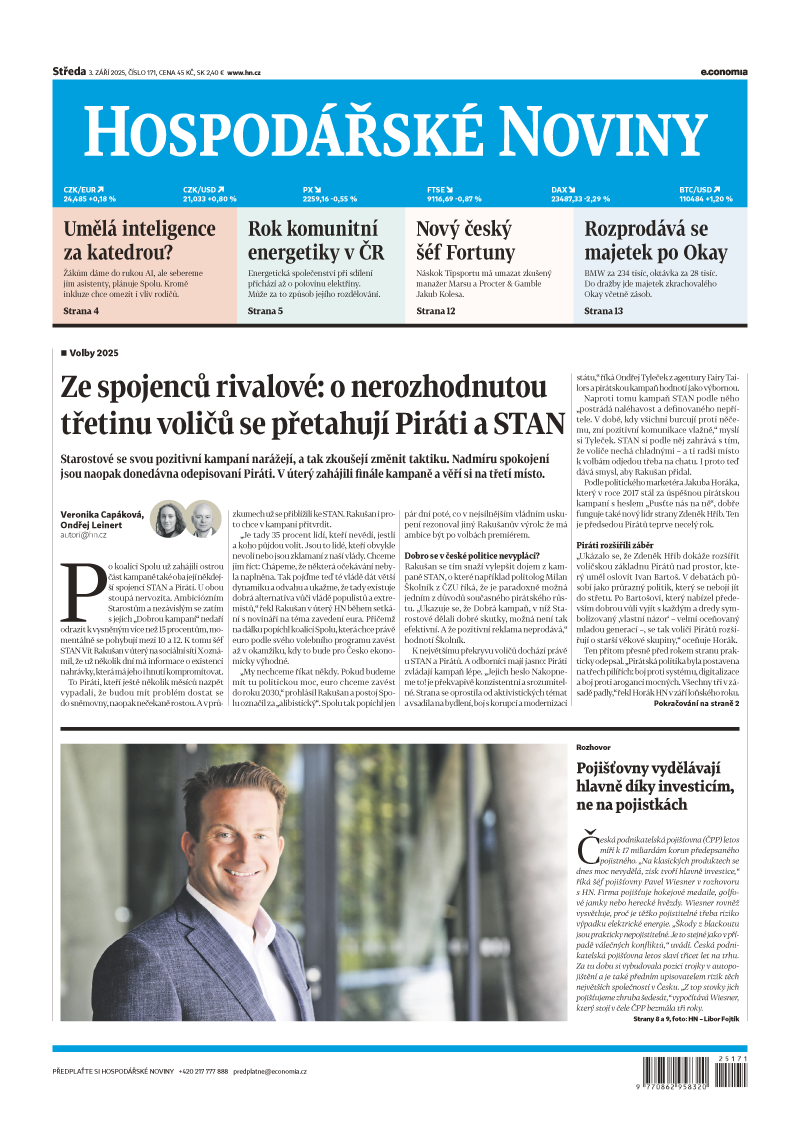 Komentář Je politika ČNB dostatečně přísná? Sílící inflace ve službách, rostoucí mzdy a vyšší nájemné signalizují, že současné sazby už nemusí stačit Česká národní banka ponechala na zasedání v srpnu sazby opět beze změny na úrovni 3,5 procenta. Při pohledu na data z ekonomiky posledních pár... 3. 9. 2025 ▪ 5 min. čtení