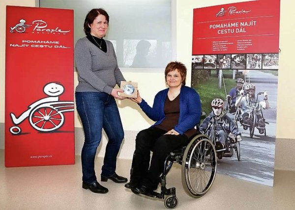 Obecně prospěšná společnost Centrum Paraple, která pomáhá lidem ochrnutým po poškození míchy, získala 11 tisíc korun z dražby olympijských podtácků Pilsner Urquell. Aukce proběhla na portálu Aukro.cz a zapojilo se do ní třicet dražitelů. Na snímku si podtácky přebírá od ředitelky centra Štěpánky Antošové (vpravo) vydražitelka Kateřina Dejmová.