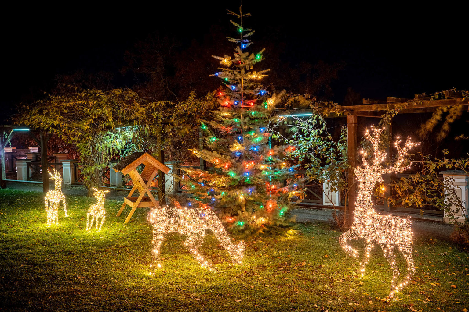 K věnci jsme postupně přidávali další světelné prvky a dekorace. Loni jsem si například dopřála sama pro sebe vánoční dárek a koupila jsem svítící pohádkový kočár tažený koněm. Několik let také na fasádu promítáme světelně‑hudební show a letos jsme poprvé otevřeli světelný park s názvem Labyrinty světla a ráj srdce. Místo, které bývalo v zimě kvůli tmě nepřístupné, se letos celé rozsvítí.